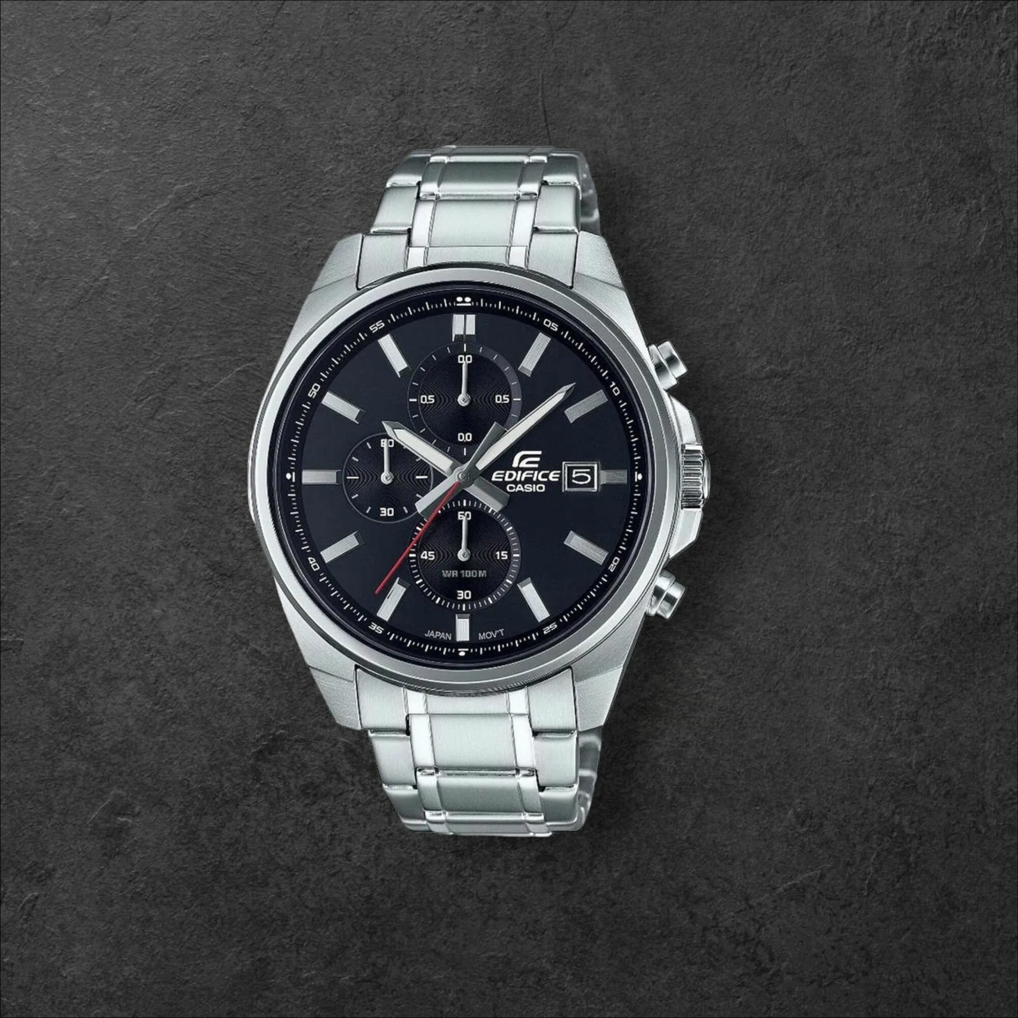 EFR-571DC-1A Casio наручные часы кварцевые WR100 (10 атм) мужские черный отображение числа подсветка стрелок минеральное стекло 24 800 ₽