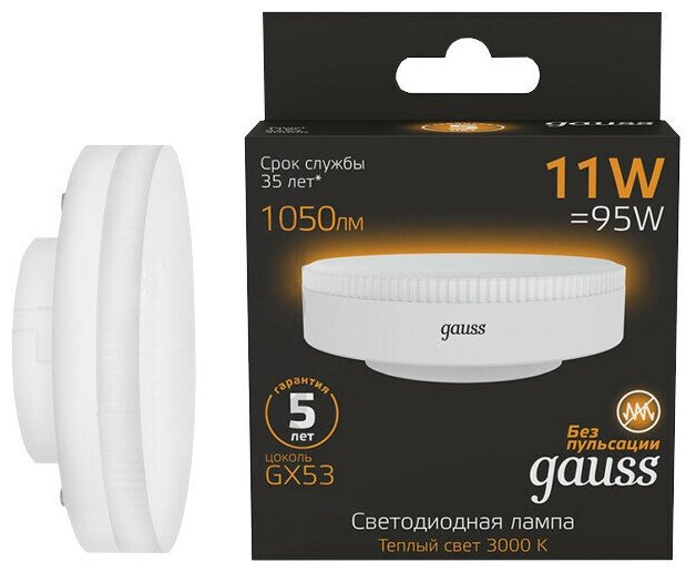 Отзывы на Лампа светодиодная LED 11 Вт 1050 Лм 3000К теплая GX53 таблетка Black Gauss (комплект 6шт)
