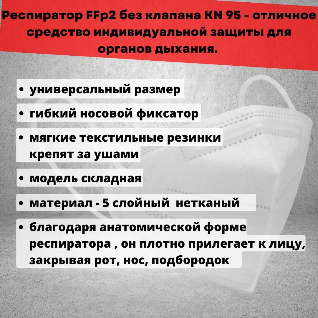 Отзывы на Респиратор универсальный KN95, FFP2, размер Безразмерные, Универсальный, 30 шт.