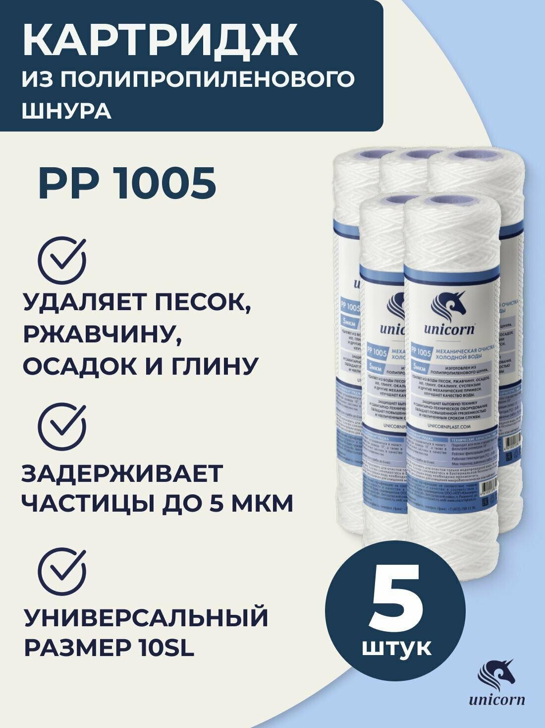 10 цен на Картридж для механической очистки воды из полипропиленовой нити Unicorn "PP 1005", 10", 5 мкм 5шт
