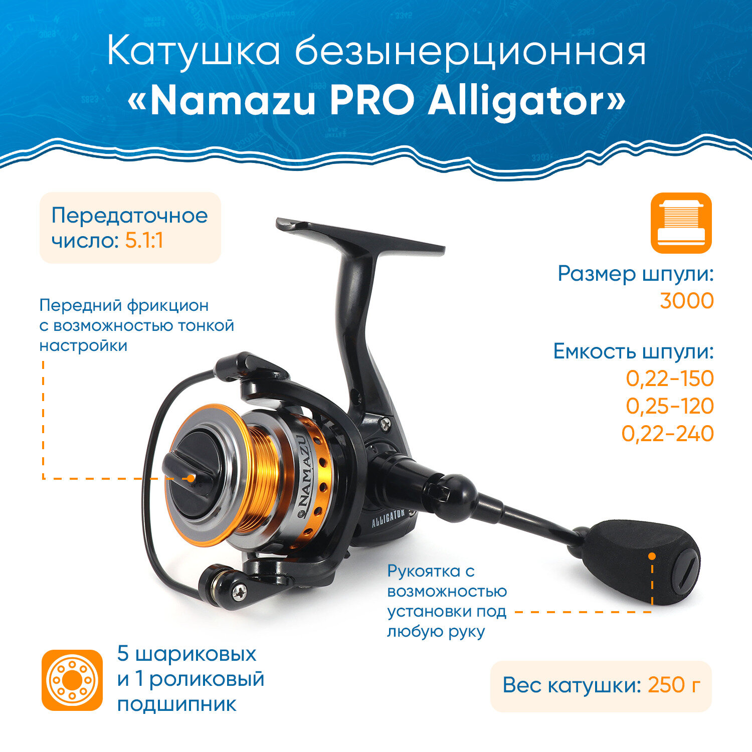 Катушка Namazu Pro Alligator NEW AL3000, 5+1 подш.
