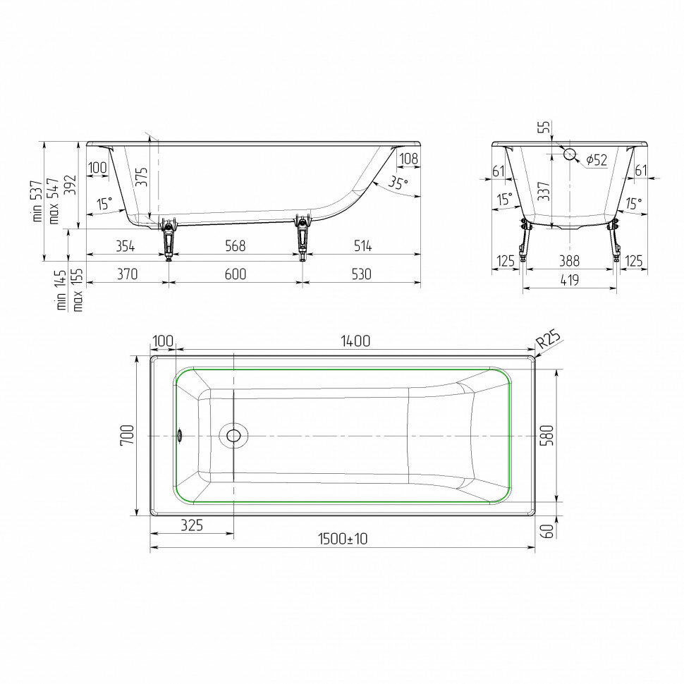 Ванна Эконом Стандарт 150x70, чугун информация: