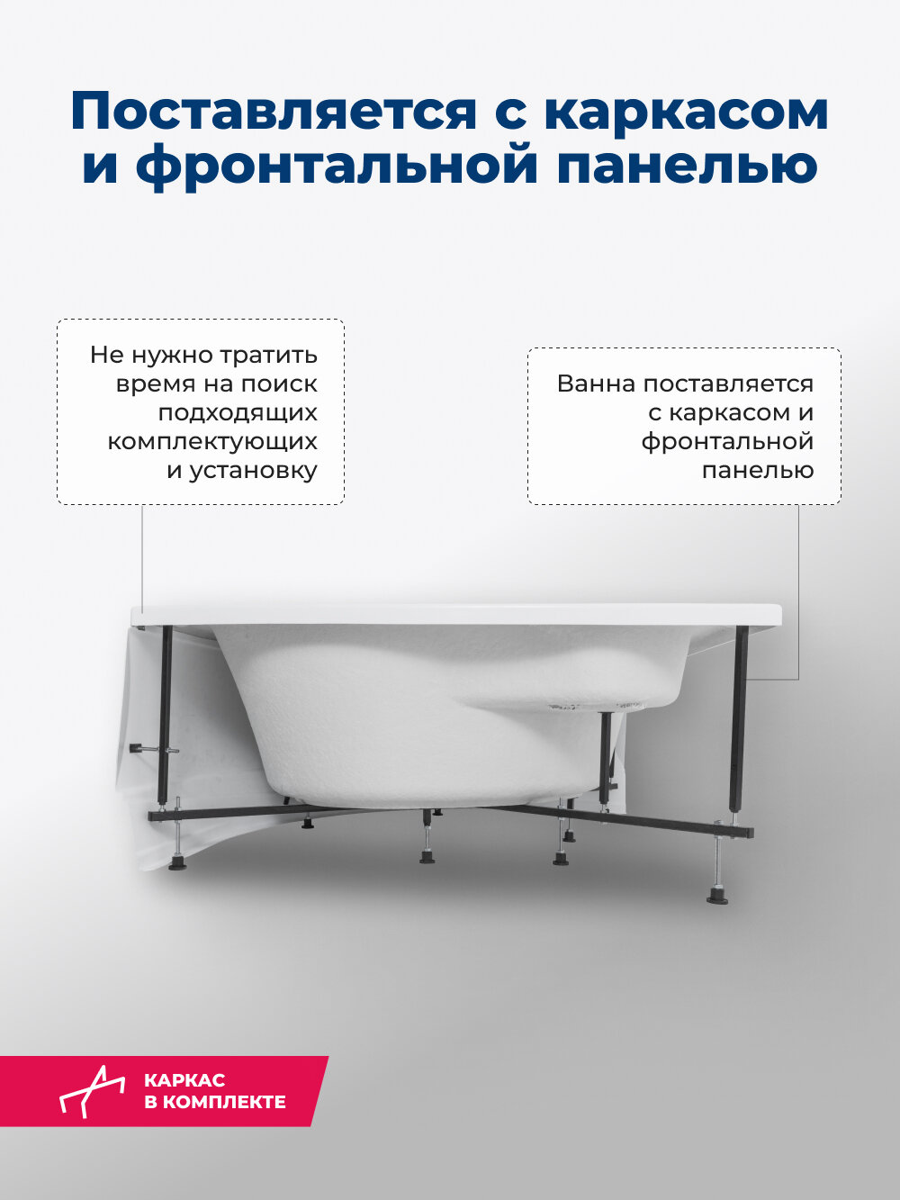 Акриловая ванна ARAGUT Кама 160х70 прямоугольная, в комплекте с каркасом, белая