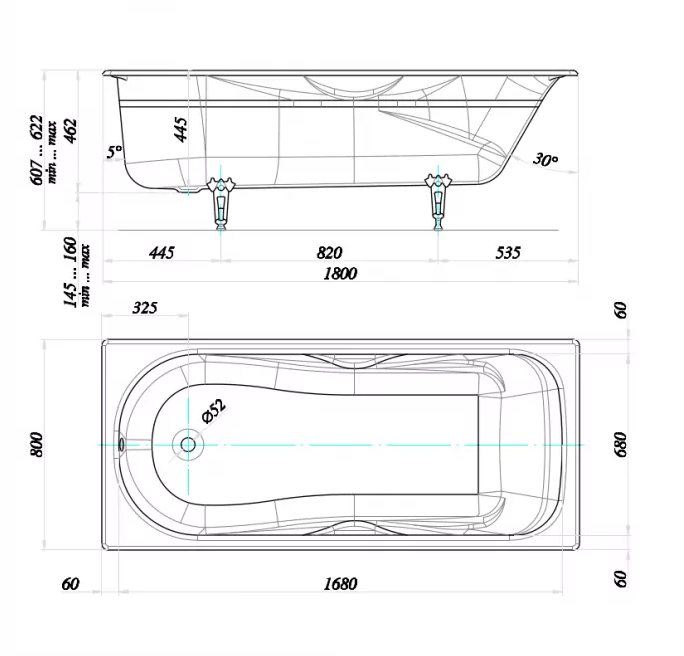 Ванна чугунная Provokateur Agate 160х70 с отверстиями под ручки