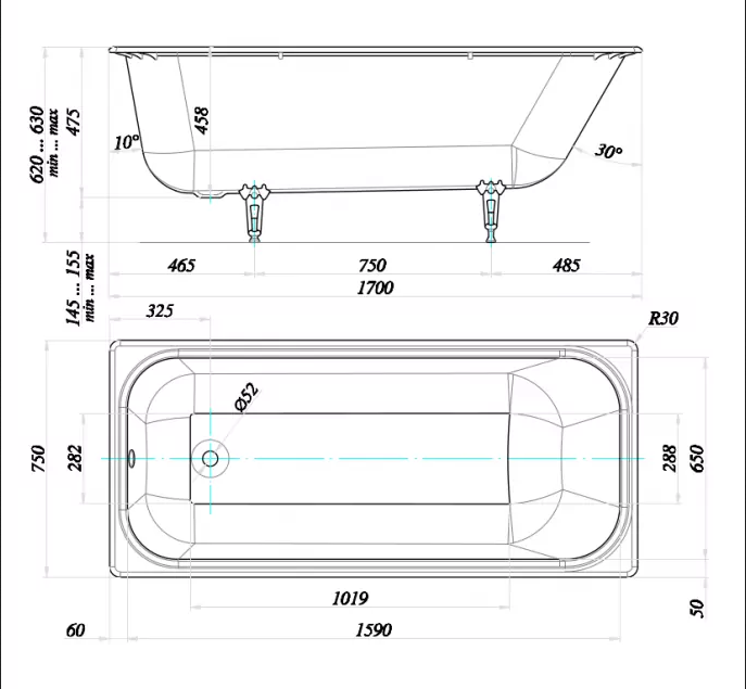 | Подробная комплектация | Ванна, комплект ножек |