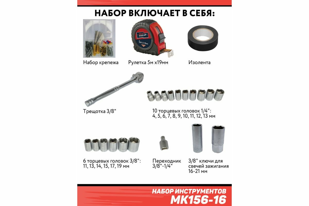 Набор инструментов Дед Макар 156 предметов МК156-16 информация: