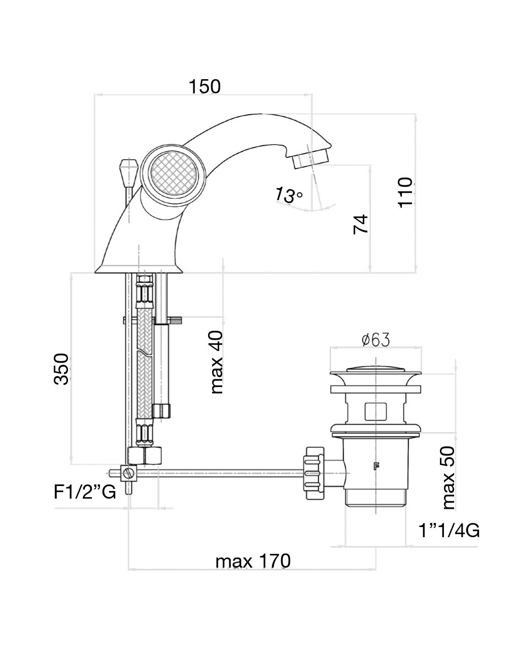 | Длина излива | 150 мм |