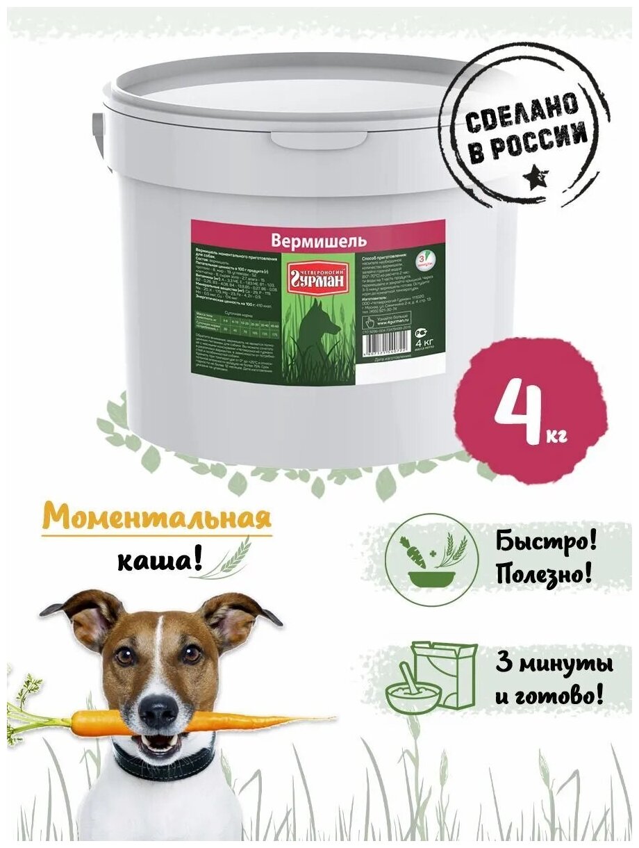 Четвероногий гурман каша для взрослых собак Вермишель (4 кг) информация: