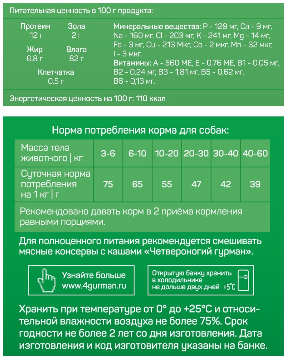"Четвероногий гурман", консервы для собак, с рубцом, 100г, 12 штук
