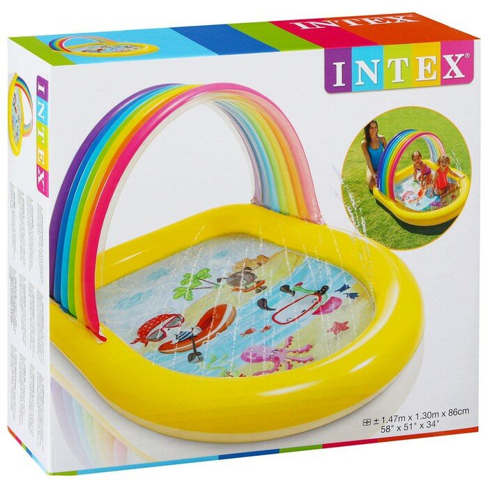 Отзывы на INTEX Бассейн надувной детский "Радуга", 147 х 130 х 86 см, с навесом и фонтаном, от 2 лет, 57156NP