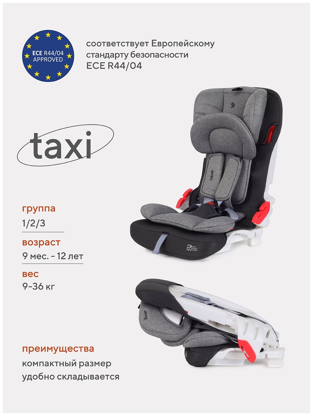 Автокресло детское Rant Taxi арт. ZY25, группа 1/2/3 от 9 мес. до 12 лет вес 9-36 кг рост 80-145 см, Grey информация: