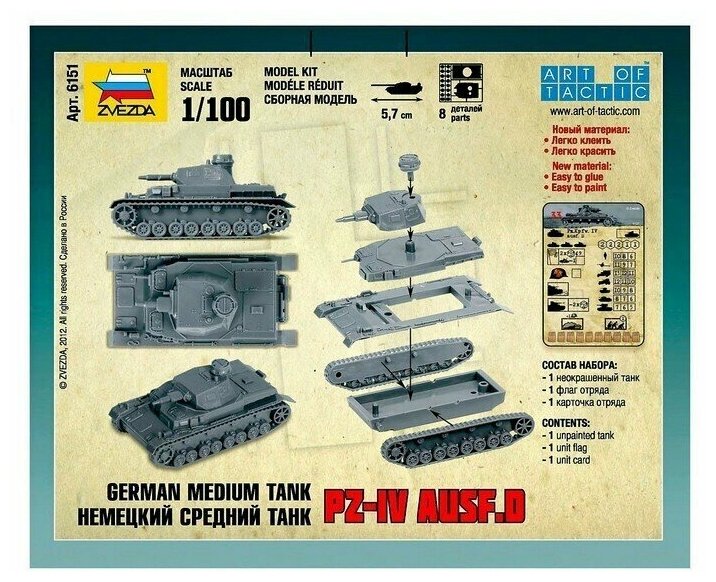 Сборная модель Звезда Немецкий средний танк Pz.Kpfw. IV Ausf. D, 1/100 6151
