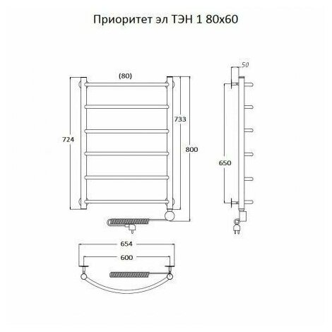 Тругор Полотенцесушитель электрический с терморегулятором Приоритет эл ТЭН 1 80*60 (ЛЦ2) Тругор информация: