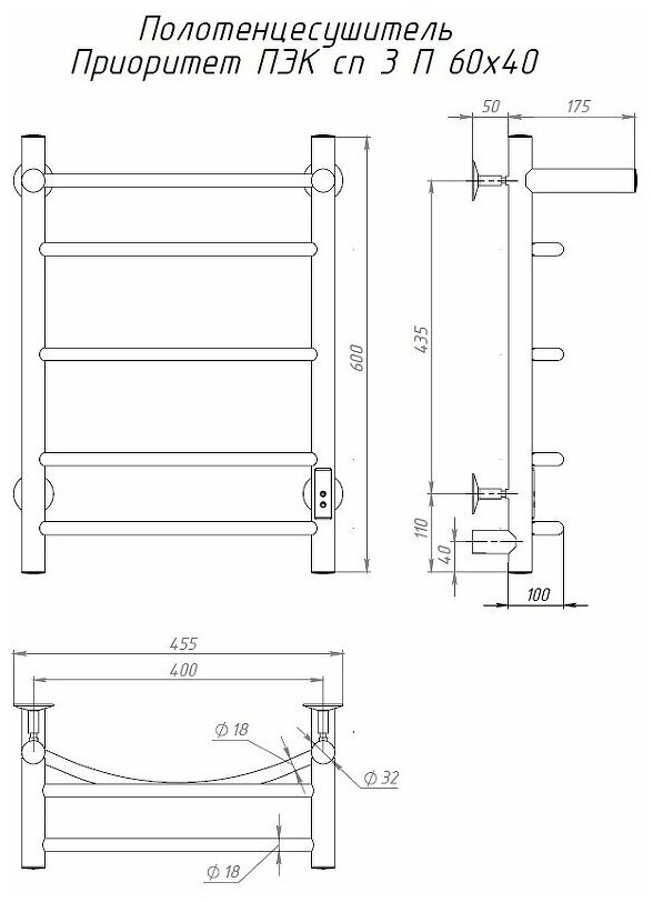 Полотенцесушитель электрический Тругор Приоритет ПЭК СП3П 60x40, с полкой информация: