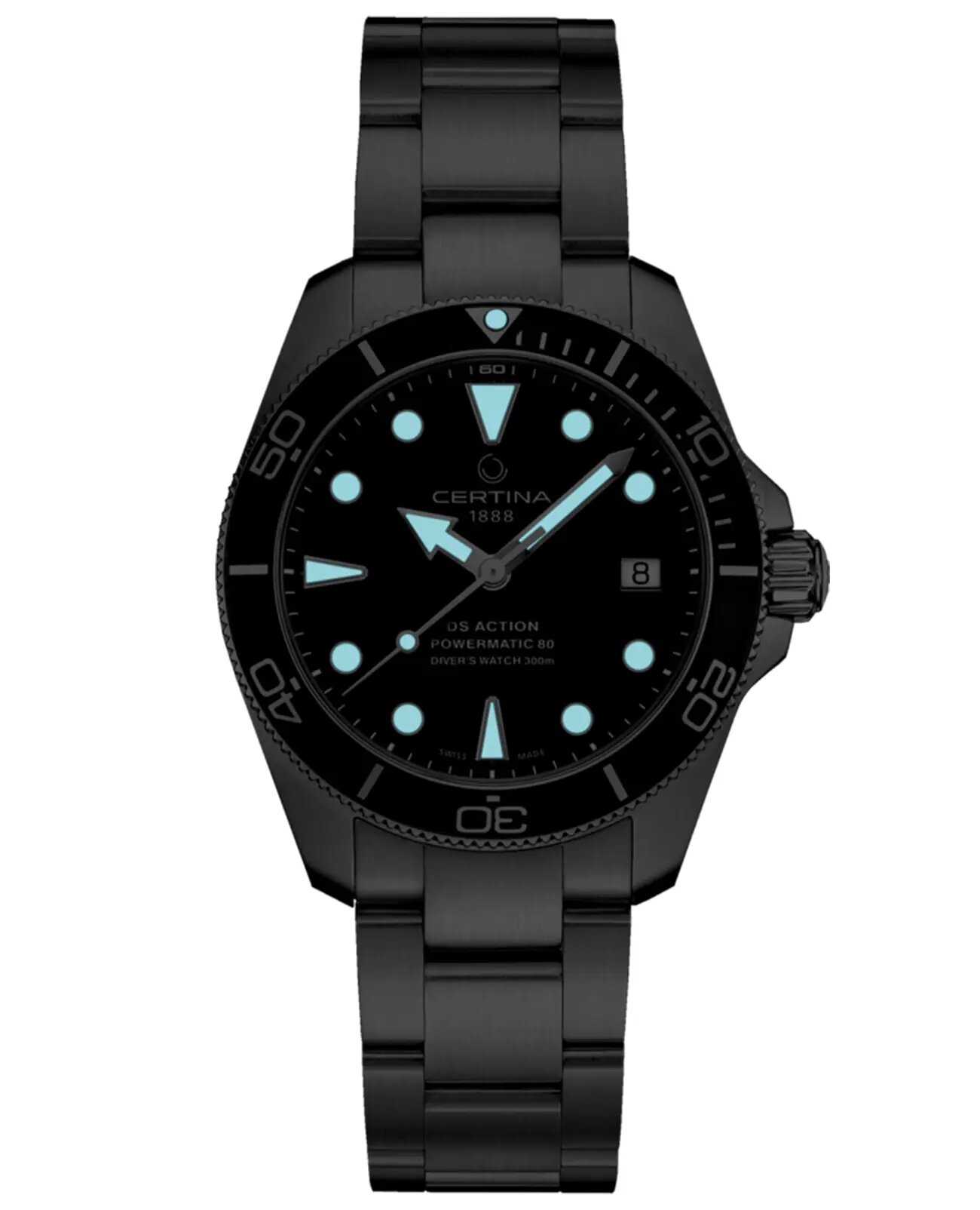 Швейцарские механические часы с автопозаводом Certina DS Action Diver 38mm C032.807.11.091.00 на стальном браслете, с водозащитой 30 бар и международной гарантией от производителя 108 400 ₽