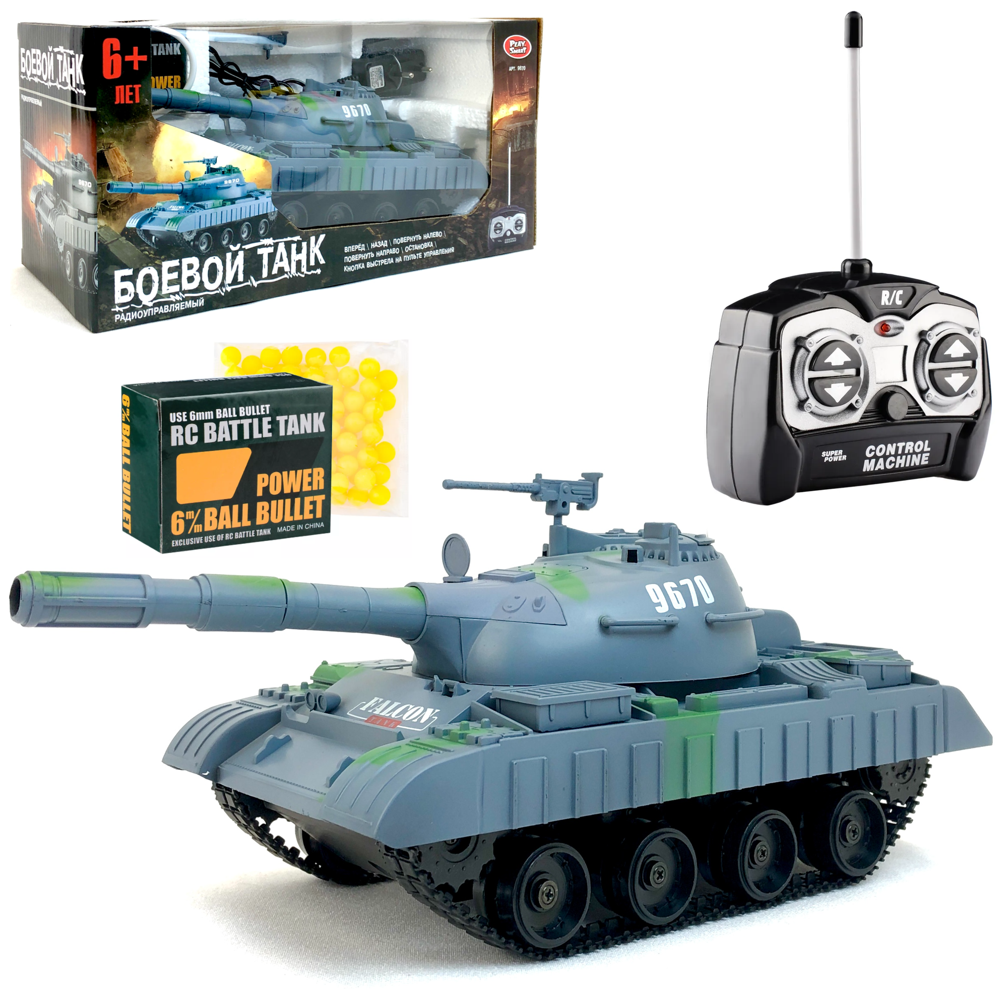 Радиоуправляемый боевой танк 9670, стреляет пульками, 1:30, гусеничный танк на пульте управления Play Smart, 27MHz, 25х11х10.5 см информация: