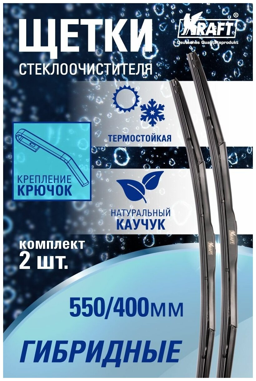Комплект гибридных щеток стеклоочистителя 550/400 мм, 1 адаптер KRAFT 830912 информация:
