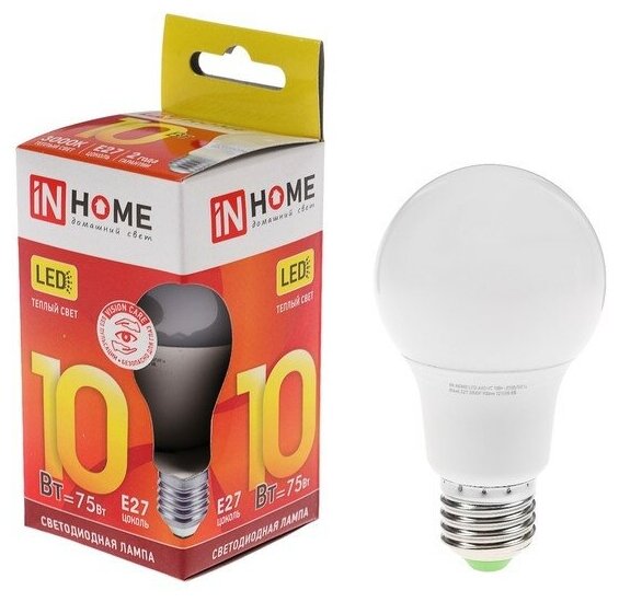 Отзывы на Лампа светодиодная IN HOME LED-A60-VC Е27 10 Вт 230 В 3000 К 900 Лм