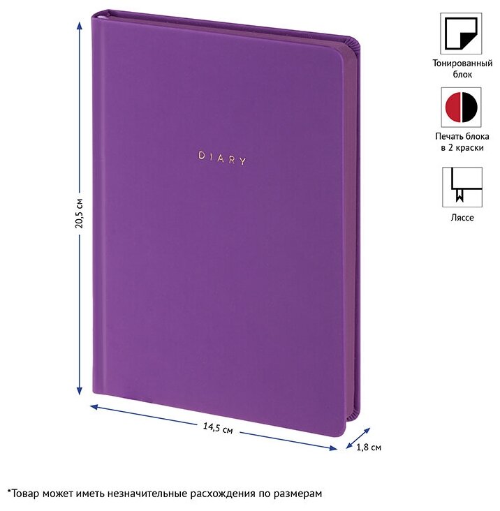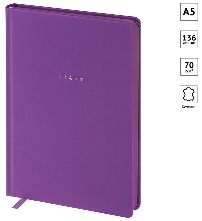 Ежедневник недатированный A5 OfficeSpace "Grace" (160 листов) обложка кожзам, фиолетовый, цветной срез (ENA5_32579)