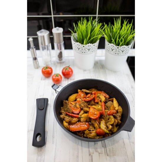 Сковорода со съемной ручкой и крышкой 26 см Vigoroso Nero (индукция, глубокая сковорода)