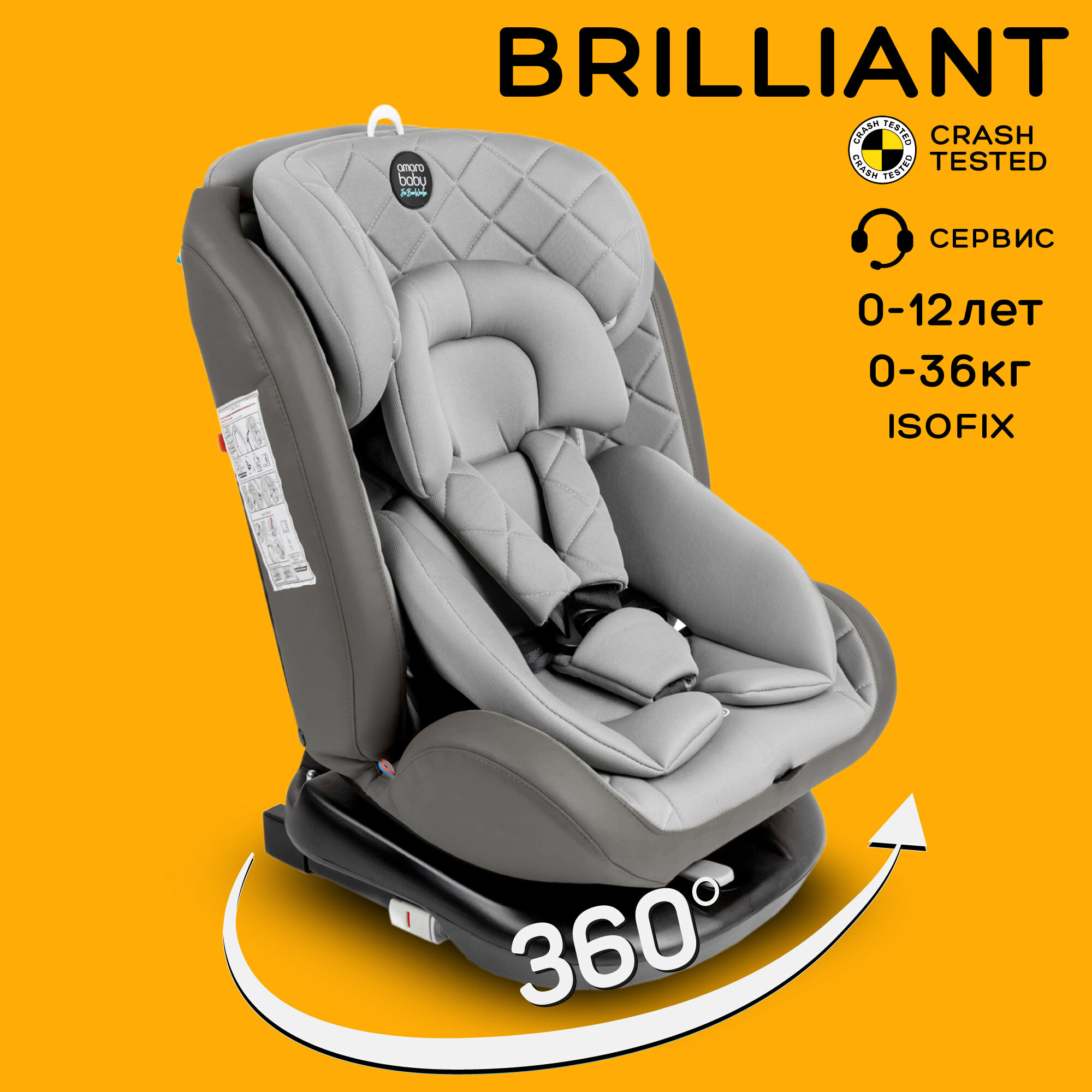 Автокресло Amarobaby Brilliant, ISOFIX, класс D, группа 0+/1/2/3, серый (AMARO-2003-BrSe) 13 996 ₽