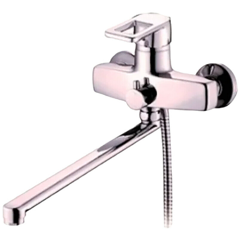 Смеситель на раковину настенный Эверест B46-350 с круглым поворотным изливом, кран-буксы 1/2", хром