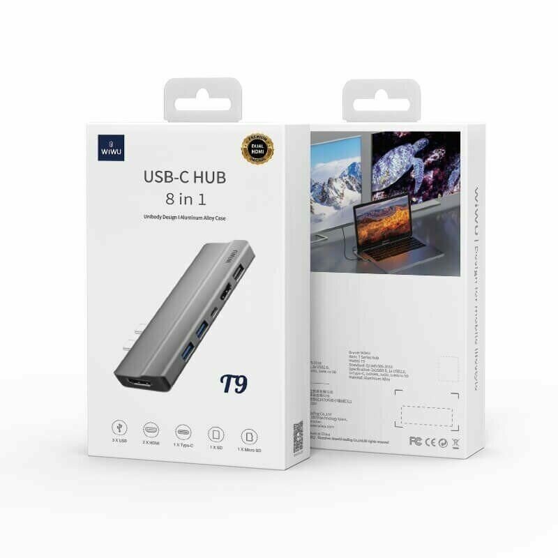Переходник - Хаб WiWU T9 x2 Type C to x2 HDMI, x2 USB 3.0, USB 2.0, Type C, Cardreader Adapter информация: