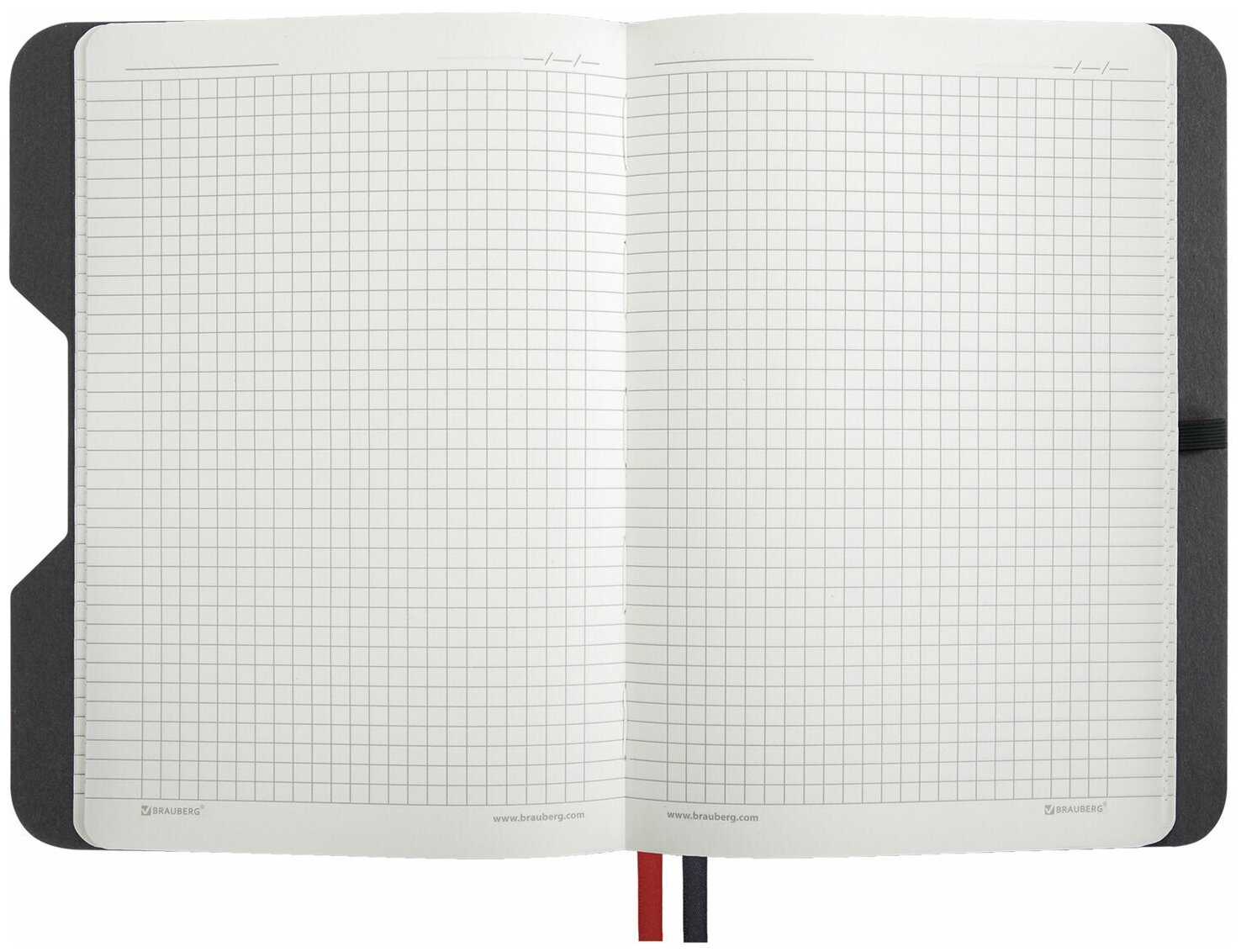 Блокнот А5 (162х218 мм), BRAUBERG "NOTE", под кожу софт-тач, с резинкой, 80 л, клетка, черный, 113437 828 ₽
