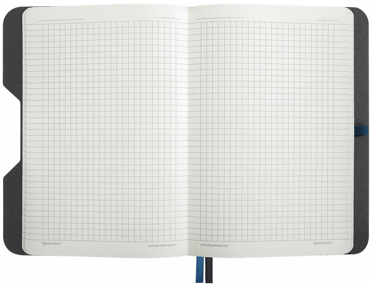 113437, Блокнот А5 (162х218 мм), BRAUBERG "NOTE", под кожу софт-тач, с резинкой, 80 л., клетка, черный, 113437