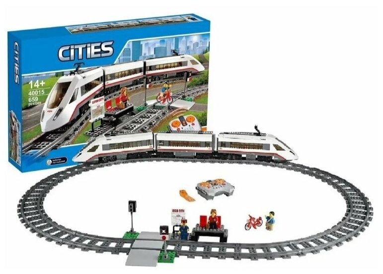 Конструктор Cities Скоростной пассажирский поезд с дистанционным управлением 659 деталей информация: