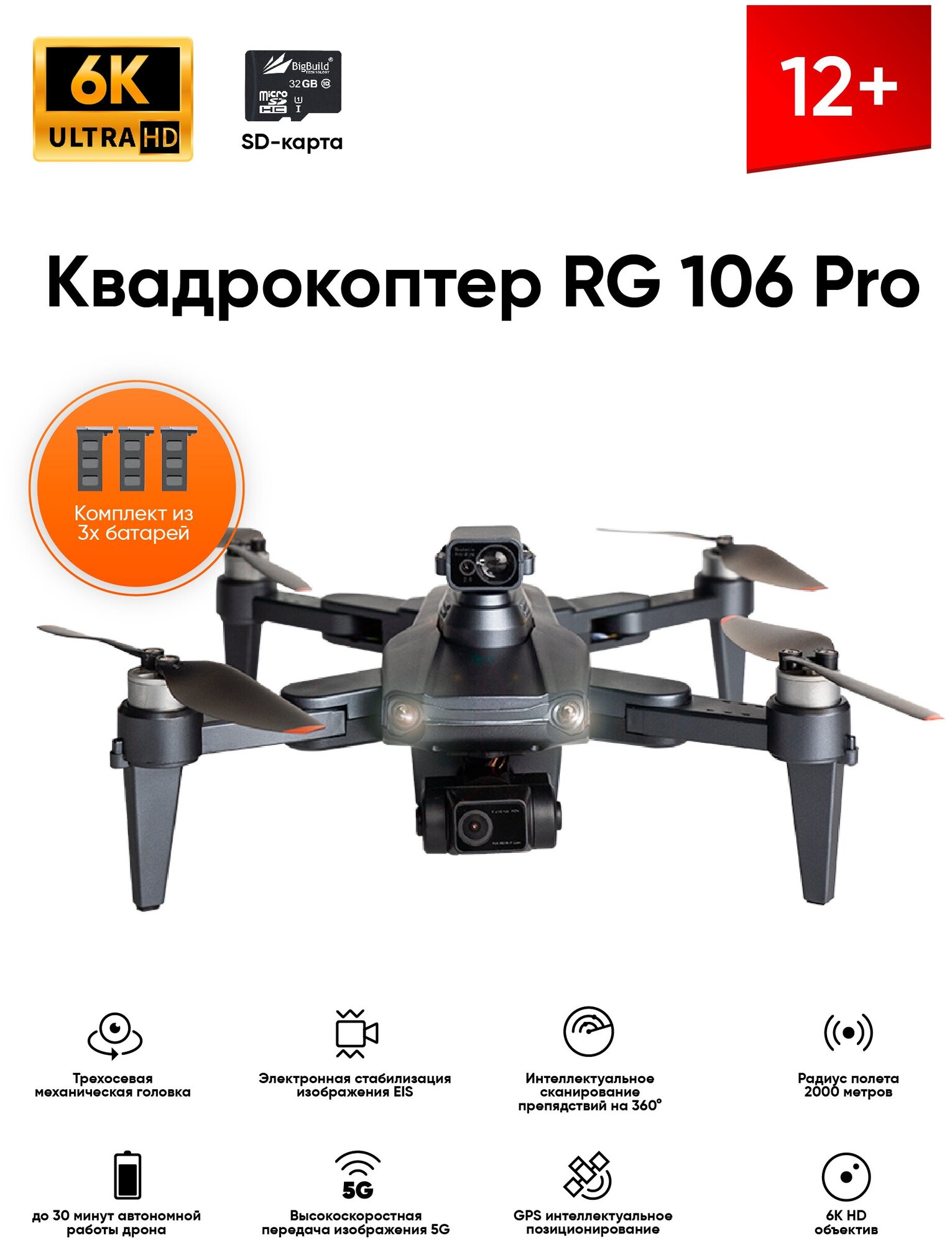 Дрон безщеточный c Wi Fi RG106Pro 6K c двойной камерой и трёхосным карданным подвесом информация:
