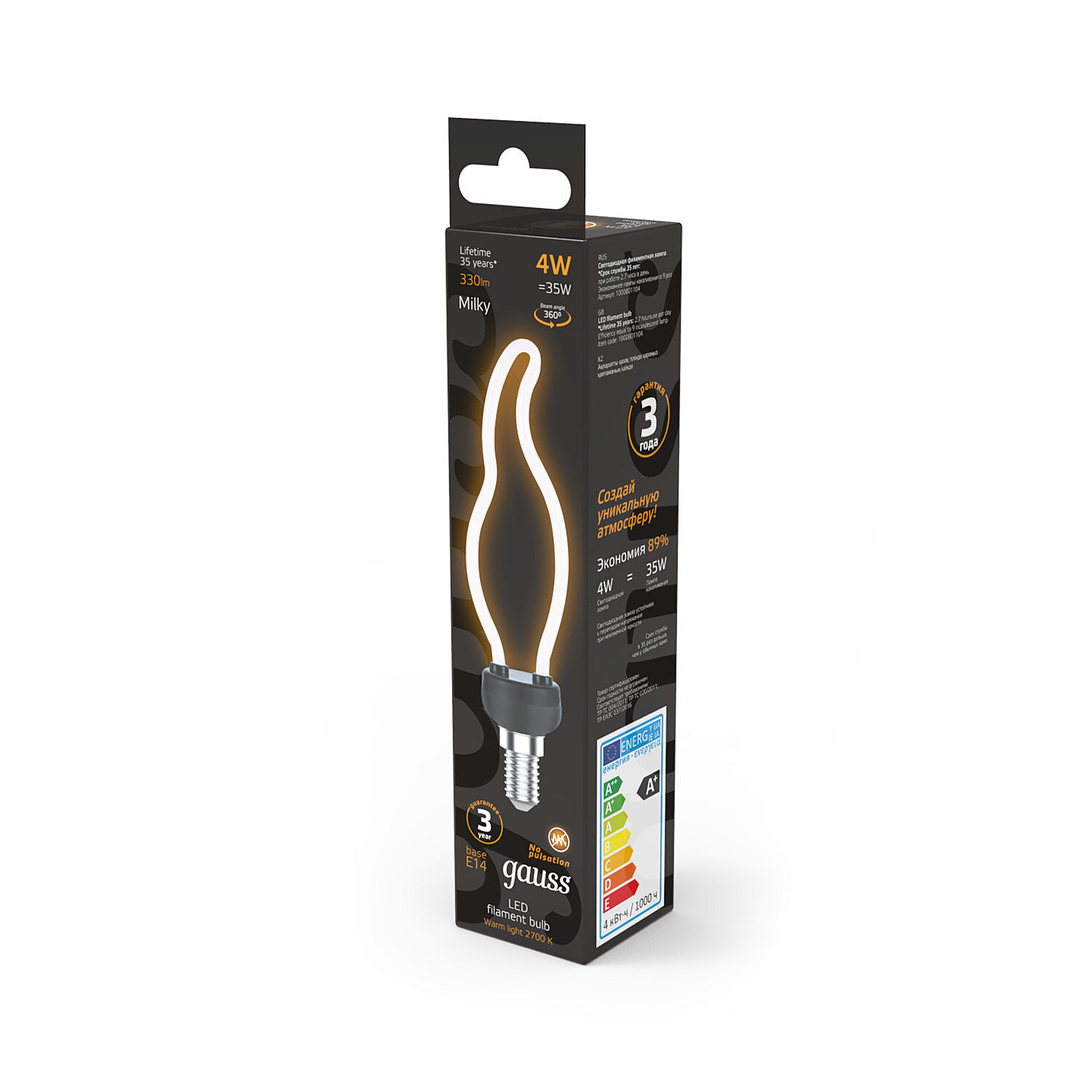 Светодиодная лампа Gauss Filament Artline 1000801104 информация: