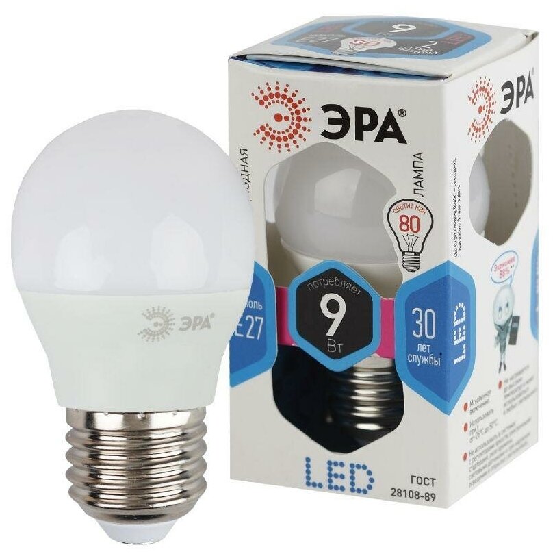 Отзывы на Лампа светодиодная P45-9w-840-E27 шар 720лм ЭРА Б0029044 (20шт.в упак.)