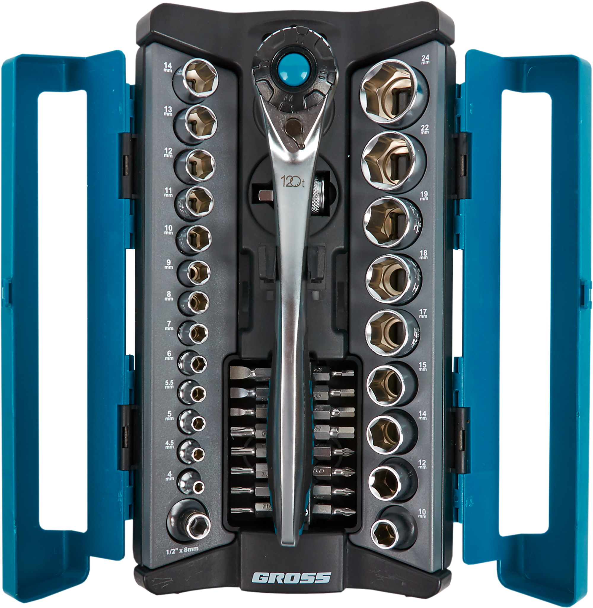 Набор торцевых головок с трещоткой Gross 1/2" - 1/4", 41 предмет информация: