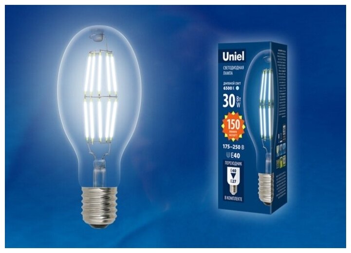 Типы/Лампочки/Филаментные Uniel Лампа светодиодная филаментная Uniel E40 30W 4000K прозрачная LED-ED90-30W/NW/E40/CL GLP05TR UL-00003760