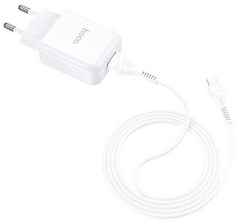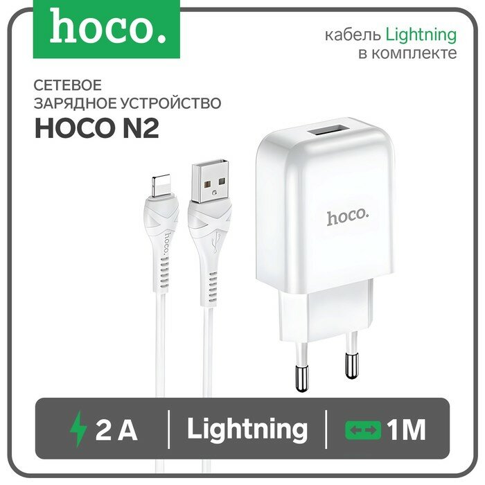 Hoco Сетевое зарядное устройство Hoco N2, 1хUSB, 2 А, кабель Lightning, 1 м, белое