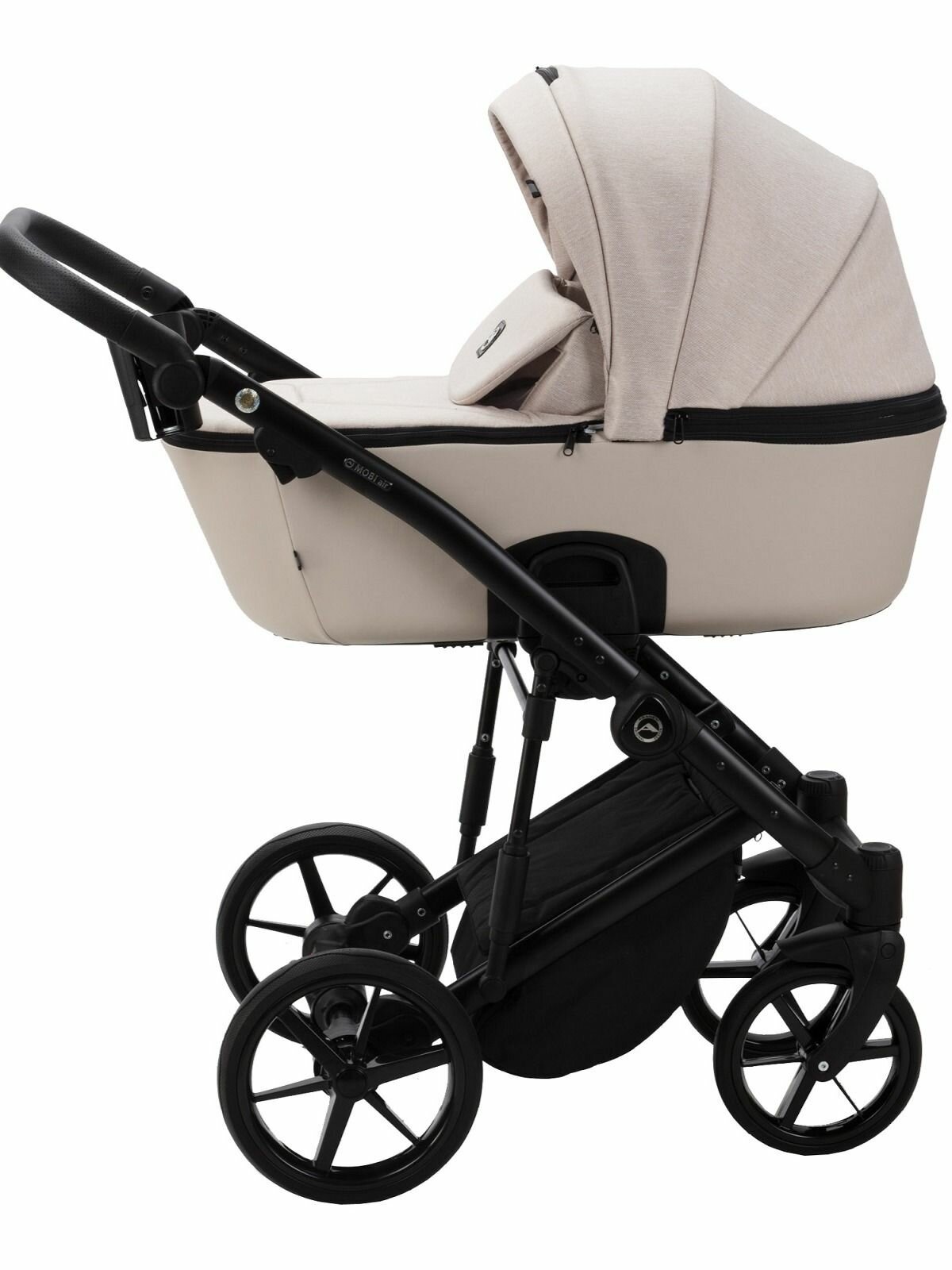 Коляска универсальная Adamex Mobi Deluxe 3 в 1, M-SD23 - Черная и светло-бежевая матовая эко-кожа