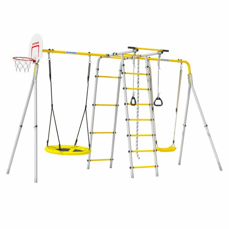 Спортивно-игровой комплекс для дачи Romana "Fitness", качели ГНЕЗДО 103.20.05 серый/жёлтый