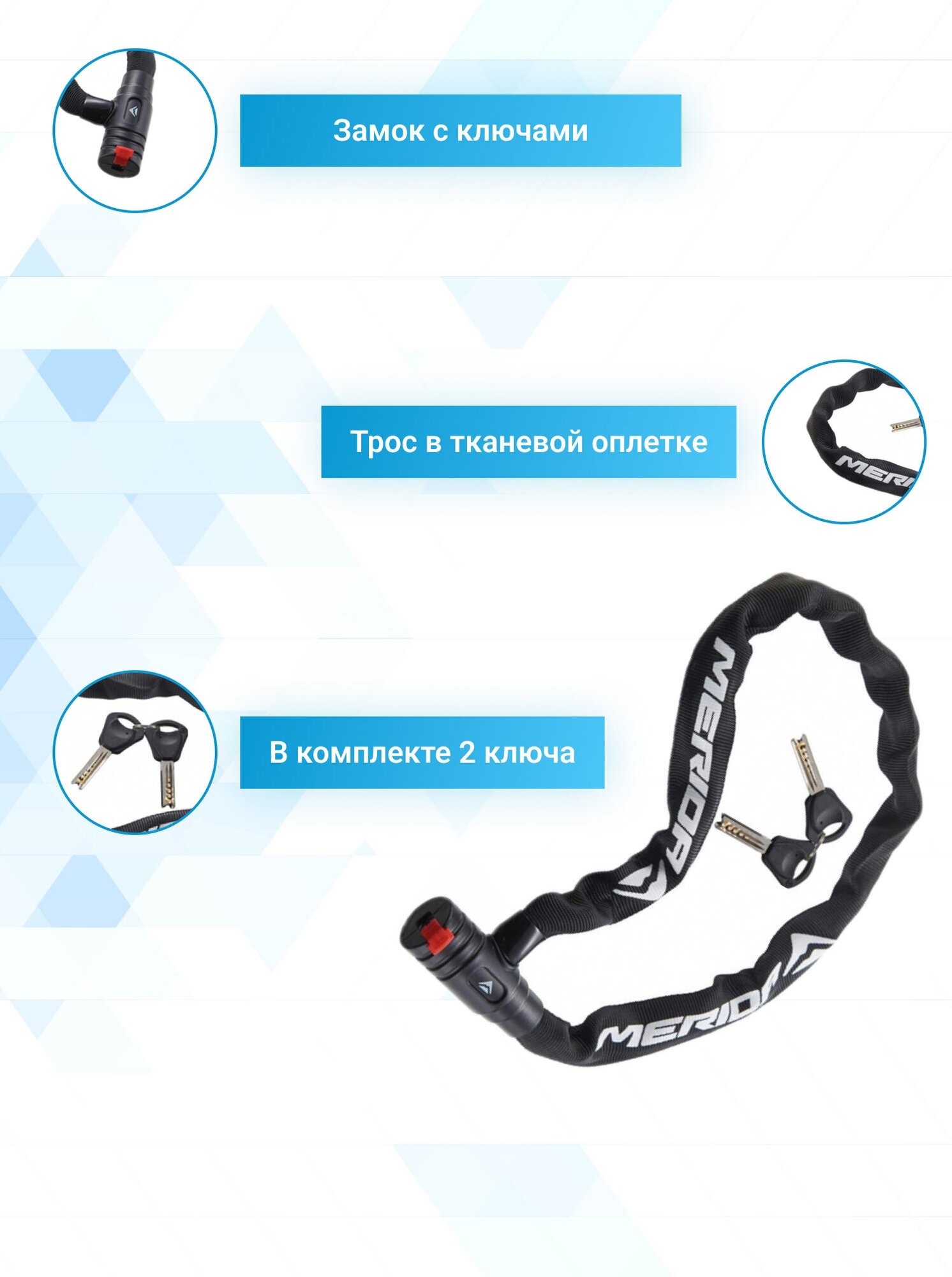 Замок противоугонный с ключами Merida Keys Cable Lock 90 см*8 мм 1050 гр Black/White 2134002662 информация: