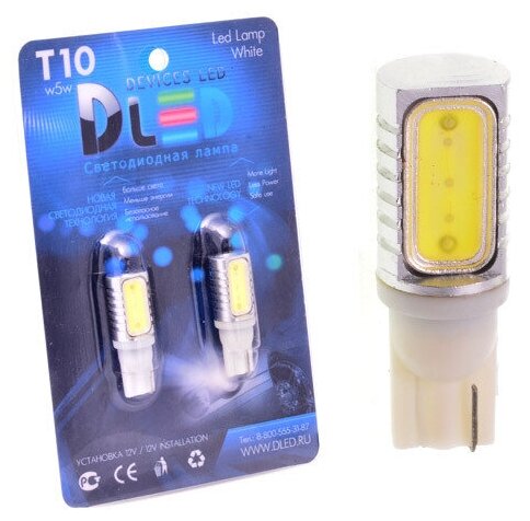 Светодиодная лампа для авто DLED Crystal T10 W5W 5000K белый свет 10 шт, в габариты, подсветку салона/багажника
