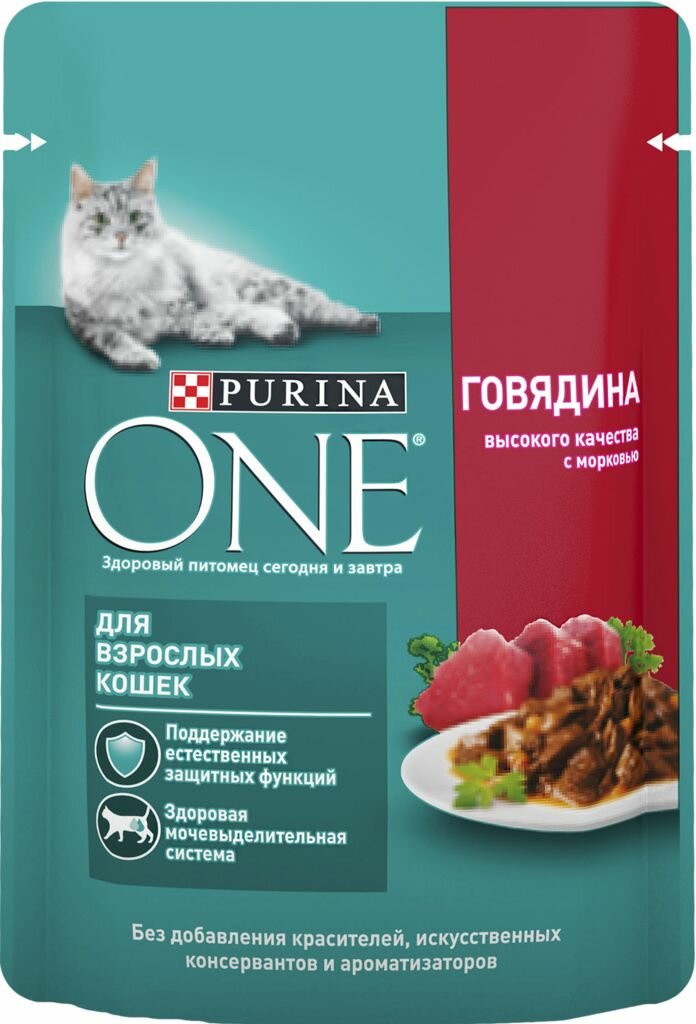 Влажный корм Purina ONE для взрослых кошек, с говядиной и морковью, 75 гр., 1 шт.
