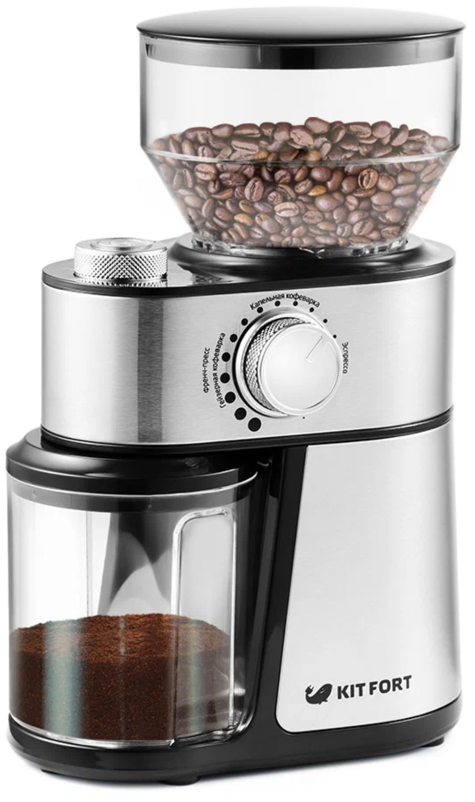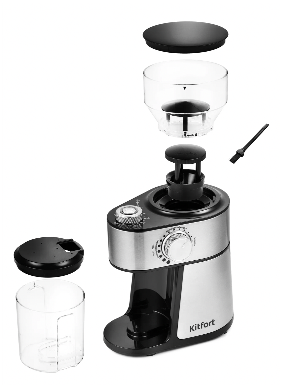 Отзывы на Кофемолка Kitfort , вместимость 230 г, блокировка включения при снятой крышке, выбор порции помола, серебристый