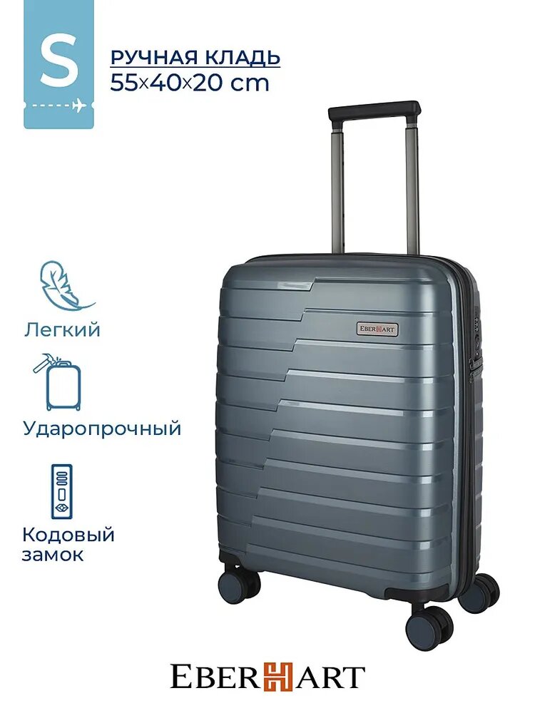 Отзывы на Чемодан Eberhart Shift маленький S для ручной клади полипропилен синяя сталь 40S-005-420