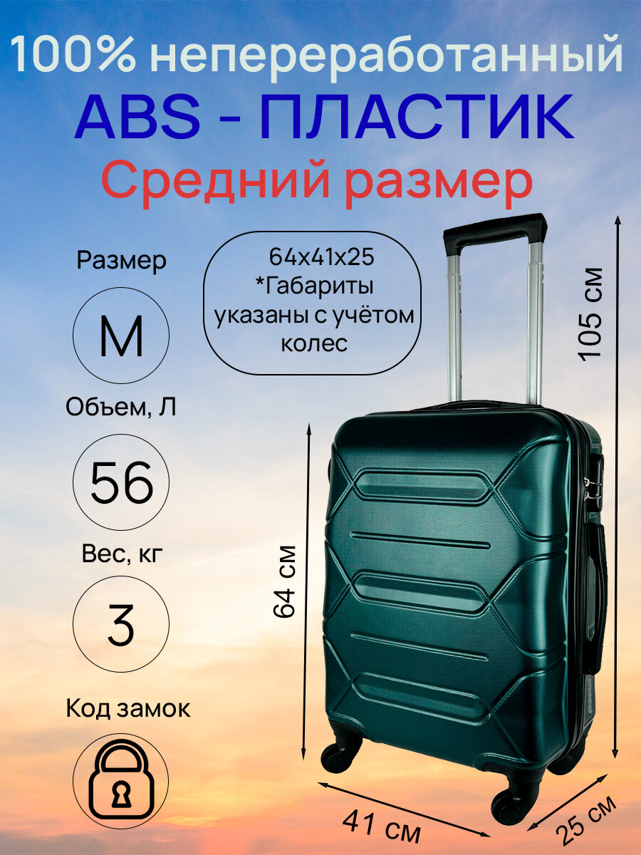 10 цен на Чемодан, средний размер (М) 56 л, 64x41x25, съемные колеса, кодовый замок, цвет - темно-зеленый