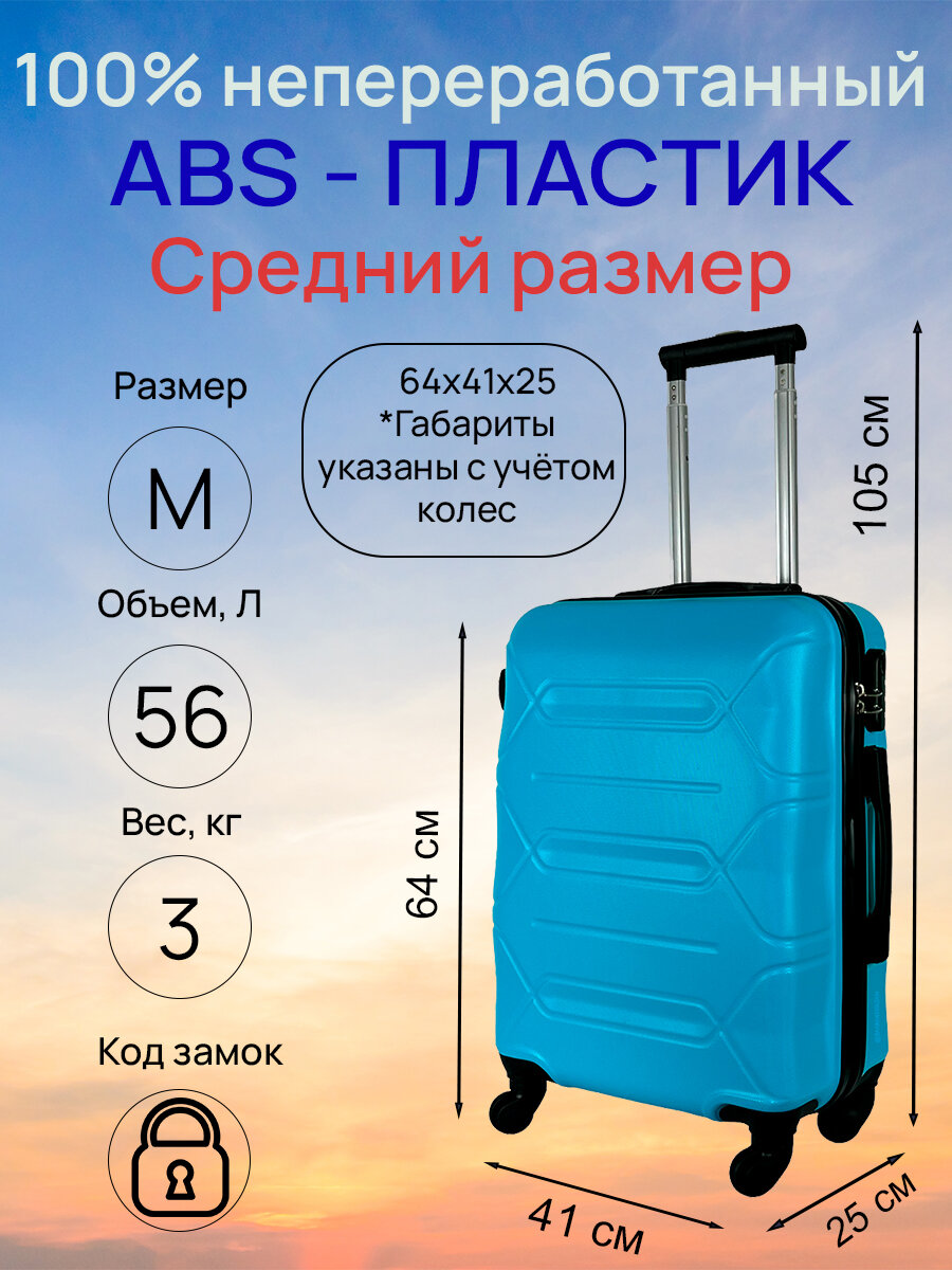Чемодан, средний размер (М) 56 л, 64x41x25, съемные колеса, кодовый замок, цвет - синий 3 990 ₽