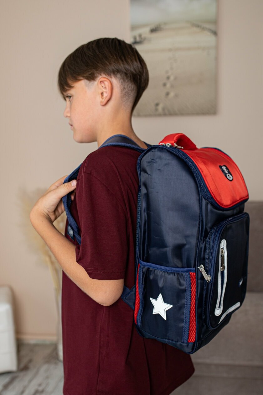 Ранец школьный для мальчика 15 л для начальной школы А4 с анатомической спинкой SkyName (СкайНейм) + часы + мешок
