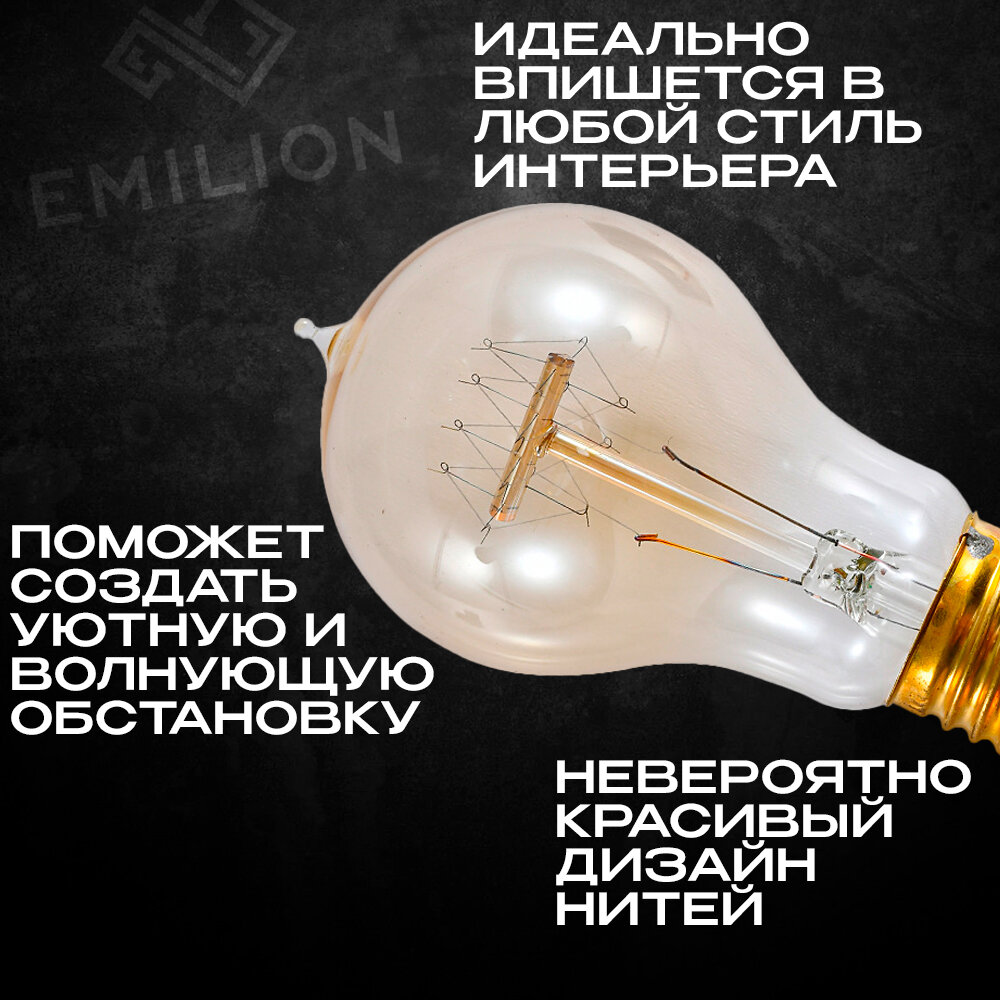 Лампа (лампочка) накаливания Эдисона Emilion Loft Edison A19 (E27, 40Вт, желтый свет) информация: