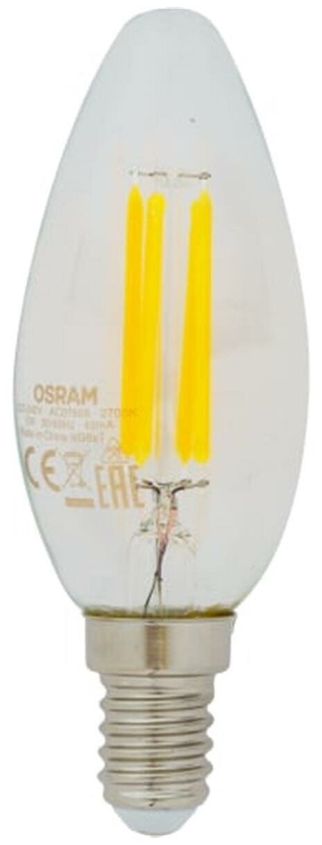 Отзывы на Лампа светодиодная Osram E14 220 В 5 Вт свеча 660 лм тёплый белый свет
