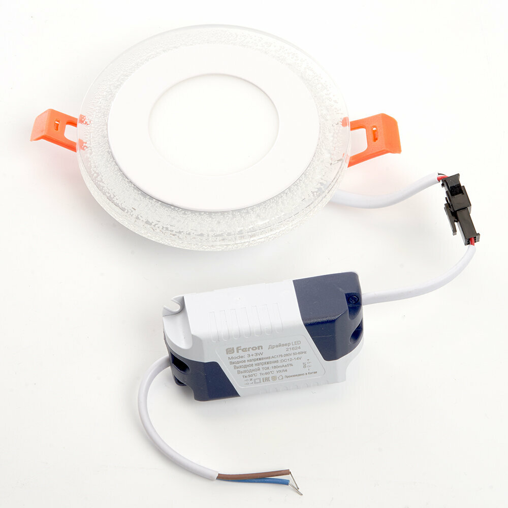 Светодиодный светильник Feron AL2330 встраиваемый 6W 4000K с синей подсветкой, белый информация: