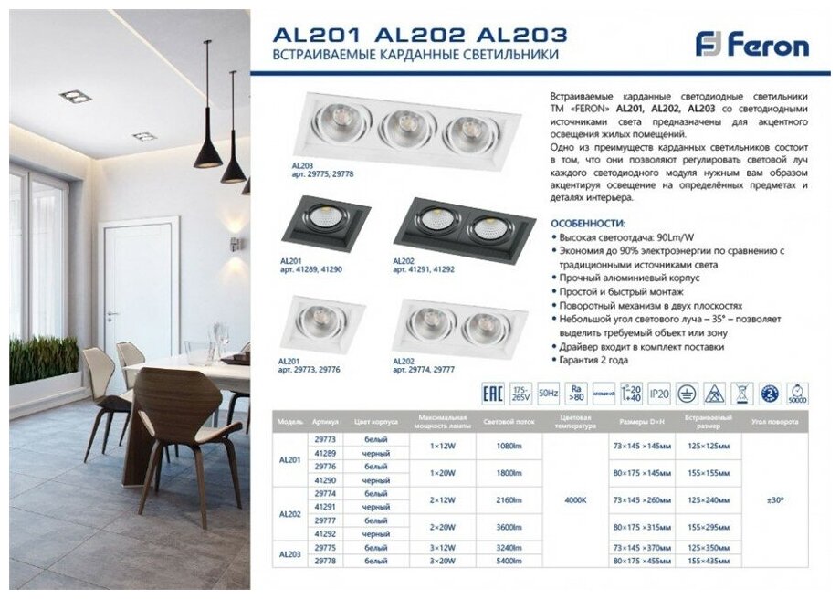 Feron AL201 41290 Светильник информация: